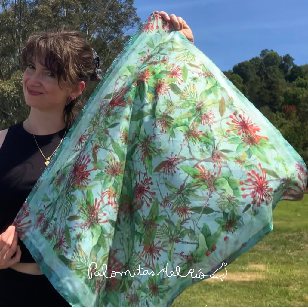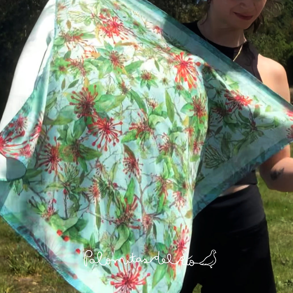 Pañuelo de tela Batti Eco 50% Repet (tela reciclada de botellas)y 50% poliéster, impreso por un solo lado.